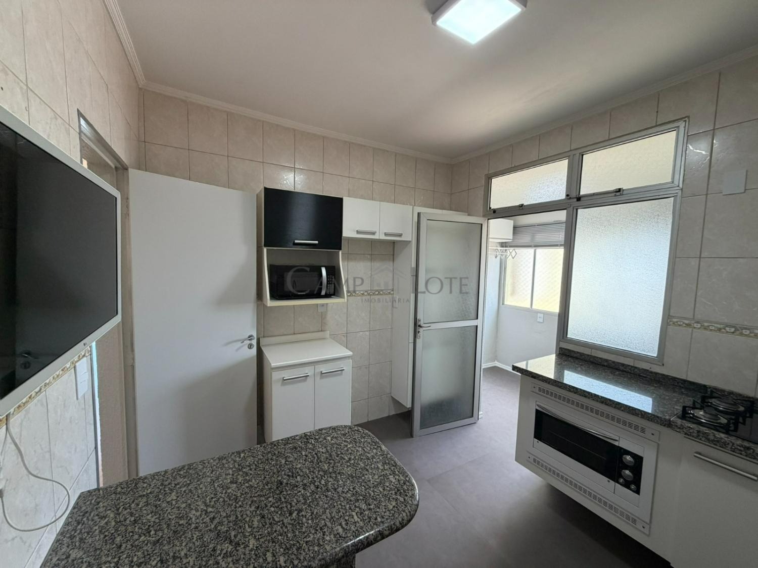 • Cozinha planejada e equipada com cooktop, micro-ondas e forno elétrico